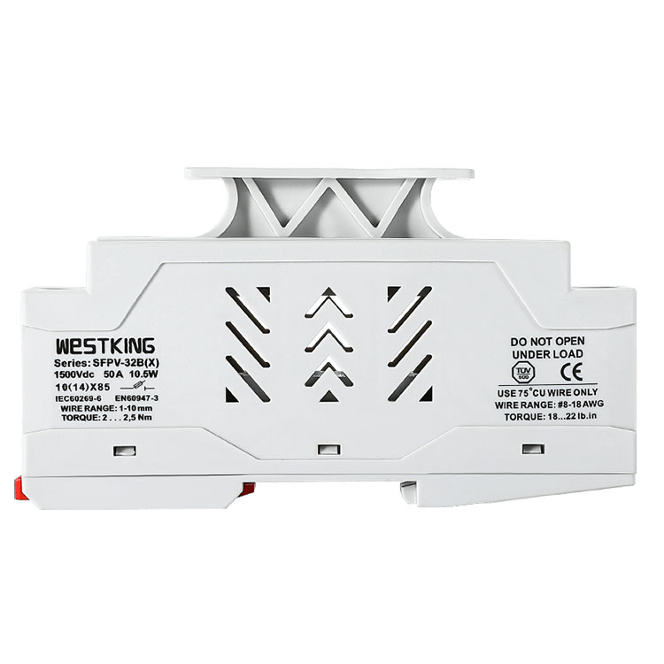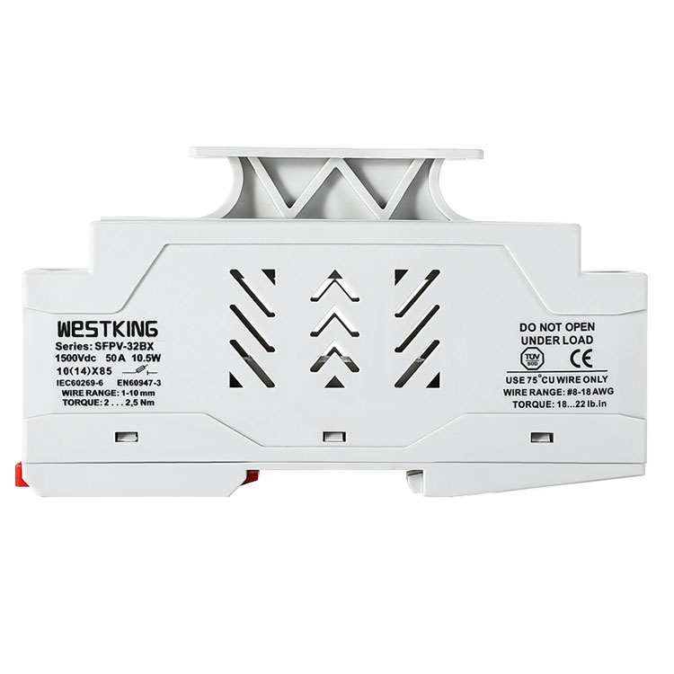 El fusible fotovoltaico SFPV-32BXLa base es compatible con fusibles fotovoltaicos de 1500VDC 10X85MM y 10/14×85MM, con una corriente nominal máxima de hasta 50A. El desarrollo de este portafusibles fotovoltaicos se basa en una comunicación profunda y verificación de pruebas con numerosos usuarios de estaciones base fotovoltaicas por parte de WESTKING. El portafusibles SFPV-32B 1500VDC presenta una estructura avanzada de disipación de calor, con canales para el flujo de aire caliente entre los polos, de manera efectiva. reduciendo la superposición de temperatura generada por el fusible. El espacio interno está diseñado para permitir que la mecha cuelgue libremente, evitando que toque la carcasa de plástico del soporte y reduciendo el riesgo de quemar y carbonizar el plástico.